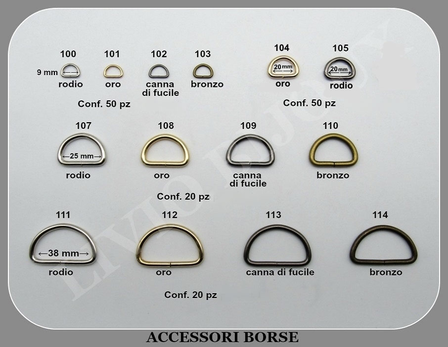 Mezze lune in metallo 9 / 20 / 25 / 38 mm Conf Varie